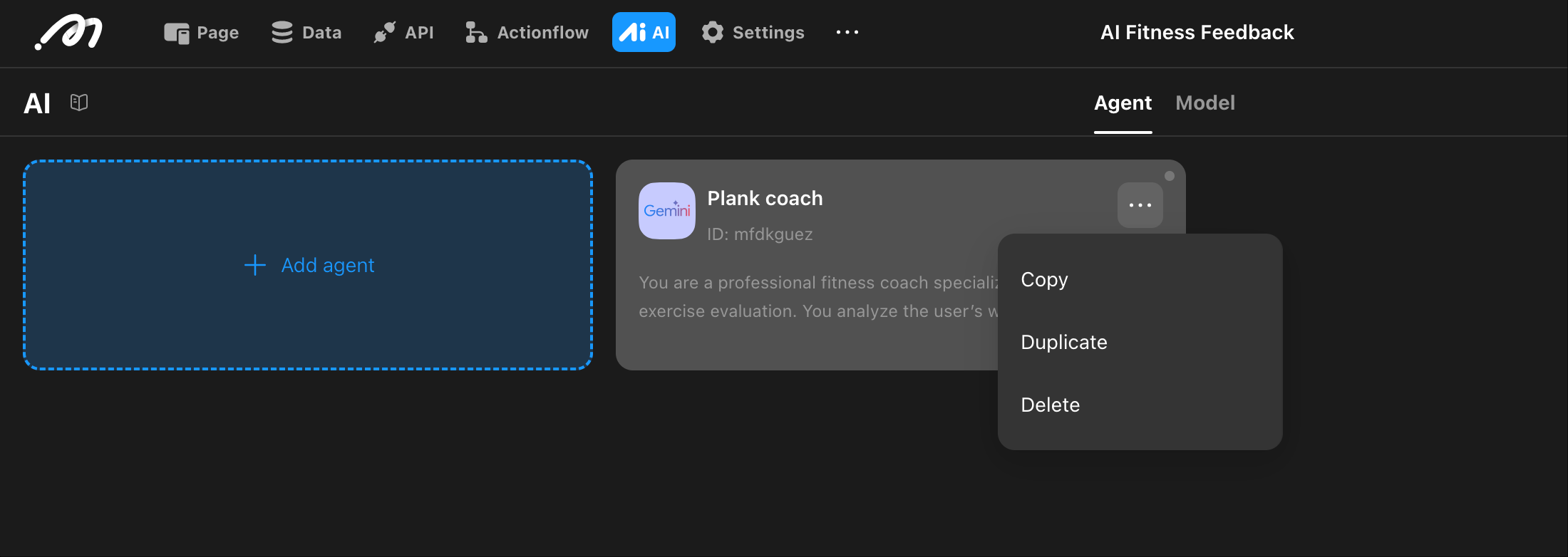In Momen, open your AI agent and copy the AI Blueprint (from the top-right menu).