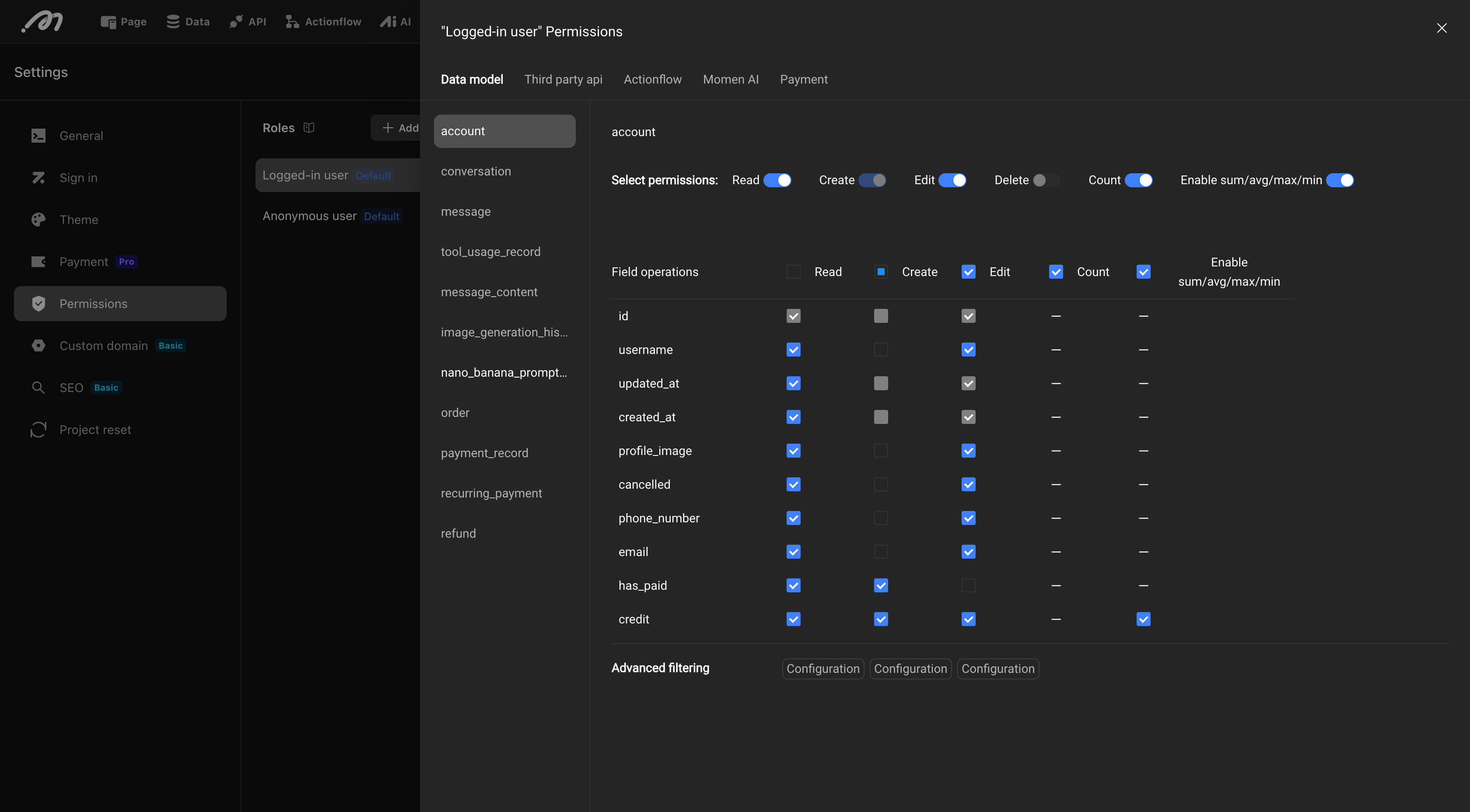 Credit-Based Scaling (Advanced): For a more scalable model, replace the boolean has_paid field with an integer field called credits. In the backend Action Flow, instead of simply updating to TRUE after payment, increment the credits field. The AI permission check then becomes: Only allow use IF logged_in_user.credits is GREATER THAN 0.