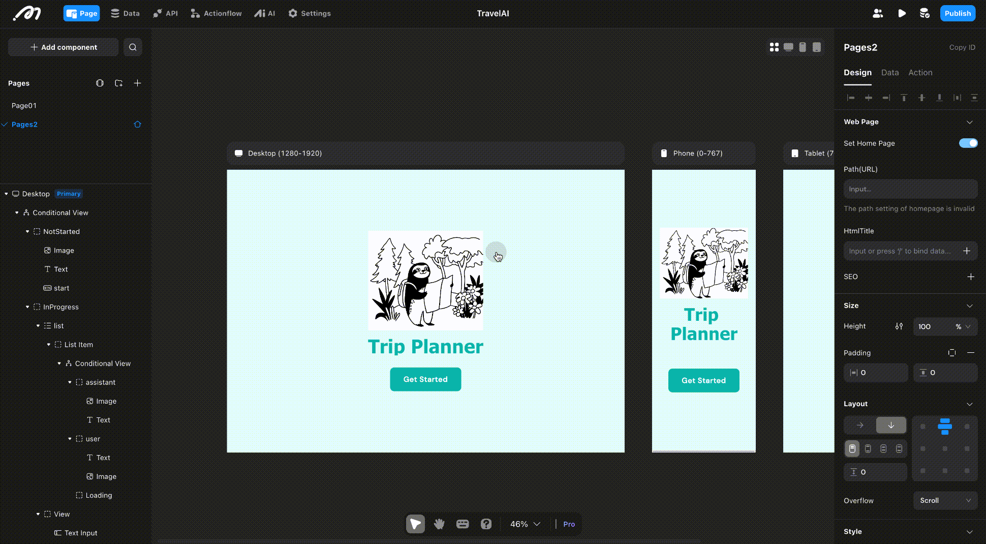 Frontend design in Momen is intuitive, using drag-and-drop functionality. The app’s UI includes two main components: