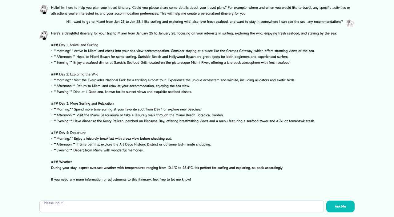 Plan as You Chat: Develop and personalize your travel plan step-by-step through a conversation with the chatbot, refining details in real-time. Perfect for vacations, workations, or everyday adventures.