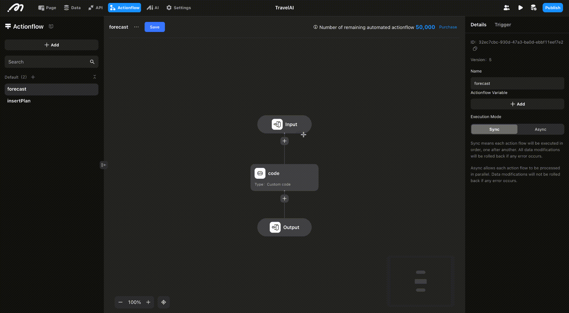 Set up tool calls (including ActionFlow and external APIs) to fetch additional data, such as weather and destination information, to refine the travel plan further.