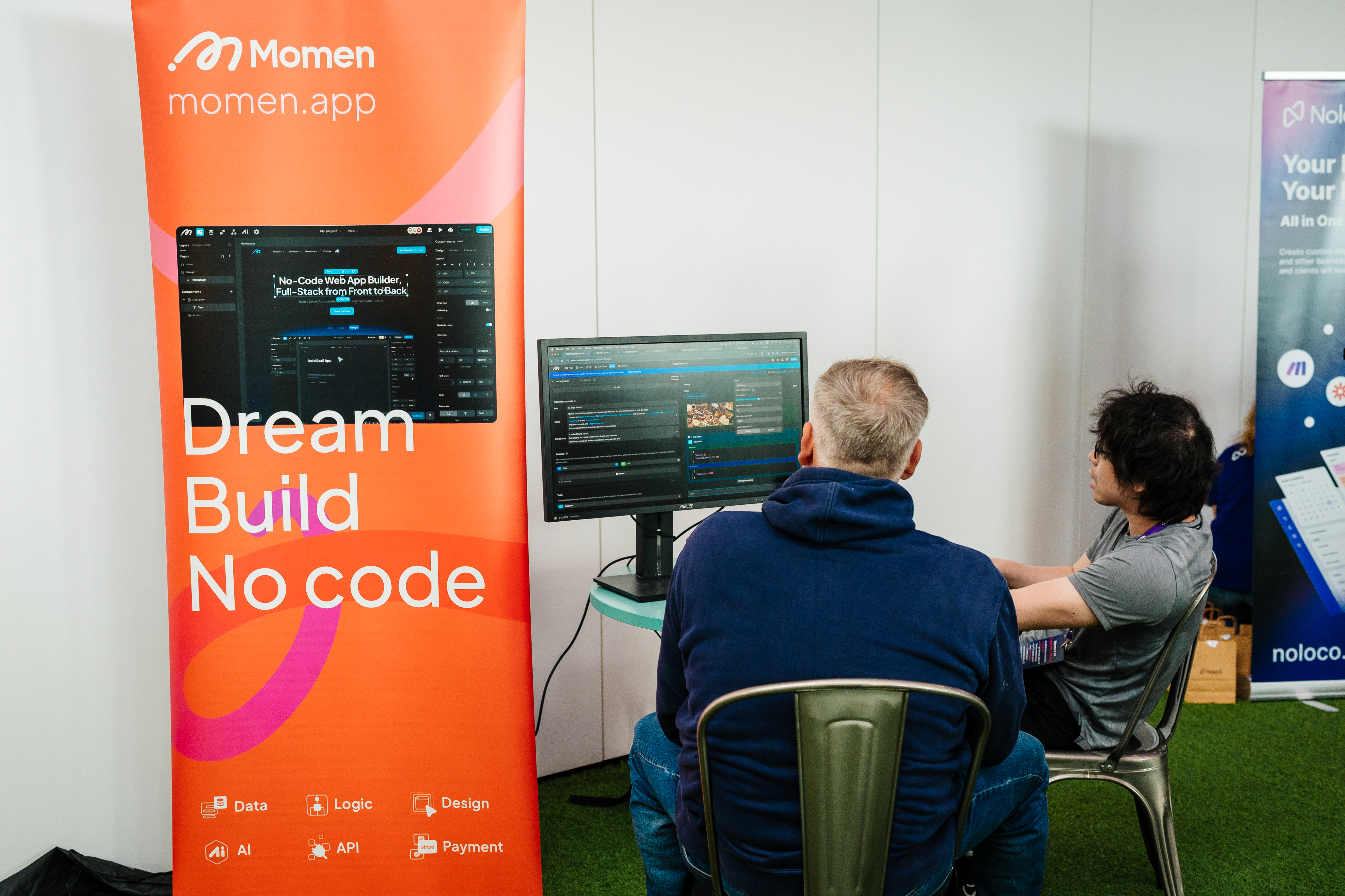 It was also the perfect meeting ground for visual dev tools like Momen to connect directly with real users — to hear their stories, understand how these tools are being used in the wild, and share their own progress with others building in thte same direction.