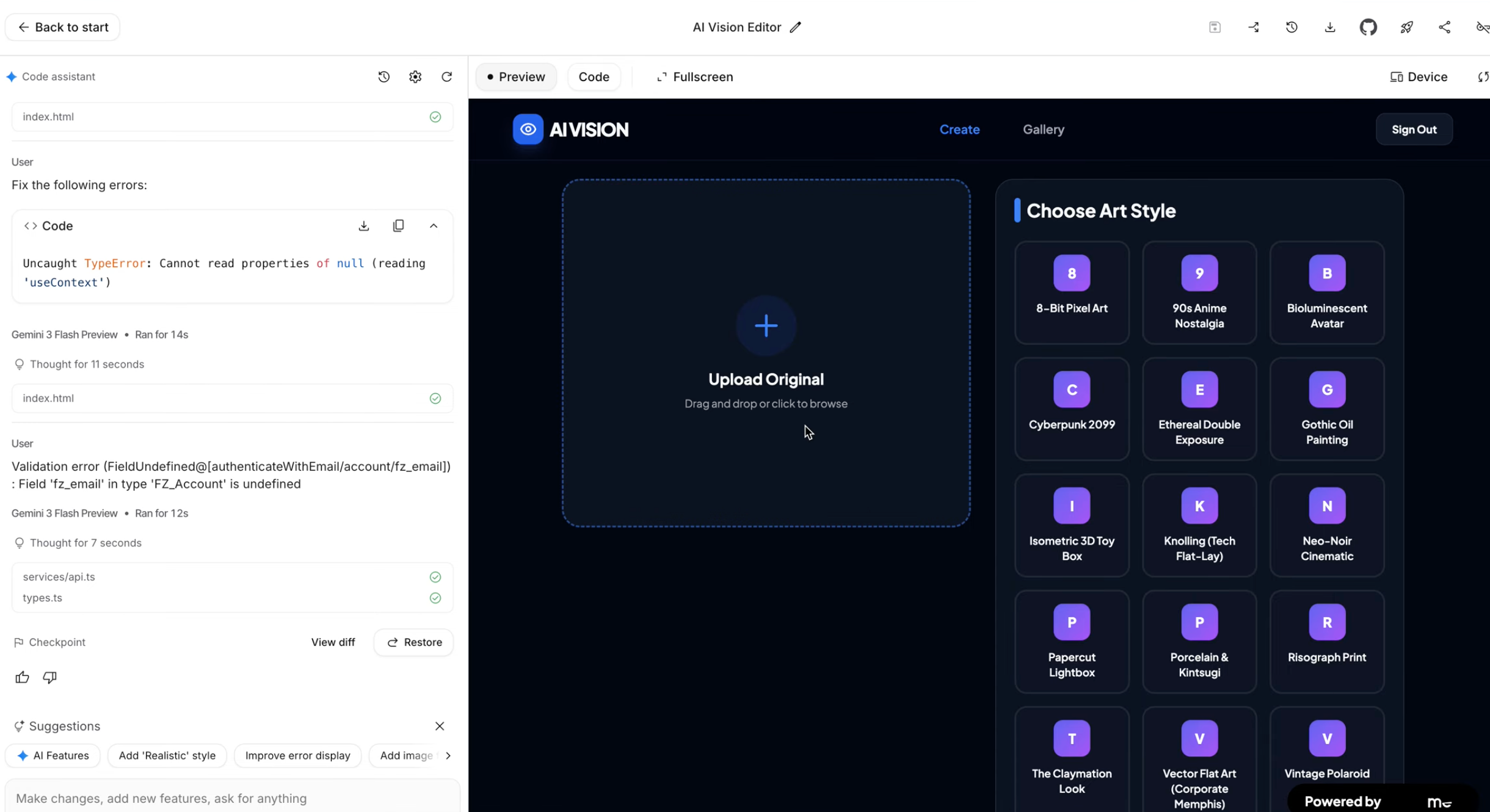 They choose a "vibe" (like Porcelain Statue, 3D Clay, or Bioluminescent).